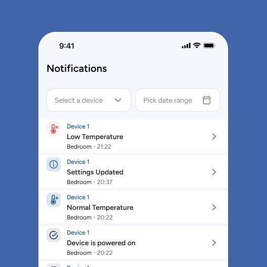 Monitor conditions, manage alerts, and adjust settings easily from one simple app.